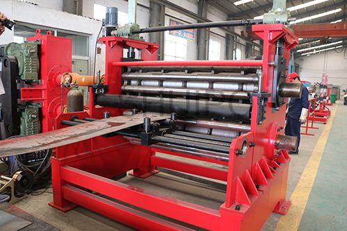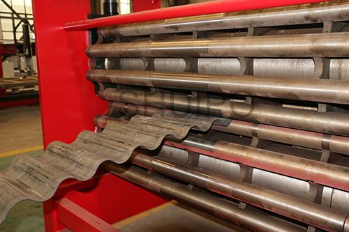 波紋板成型機(jī)主要分為機(jī)架、驅(qū)動部分、上壓輪、下壓輪、進(jìn)料導(dǎo)向機(jī)構(gòu)、以及前后工作臺,波紋板自動成型機(jī)通過同時旋轉(zhuǎn)的上、下壓輪,將平板加工成波紋狀,成型效果一致性好,效率高,波紋的高度調(diào)整有電機(jī)驅(qū)動。