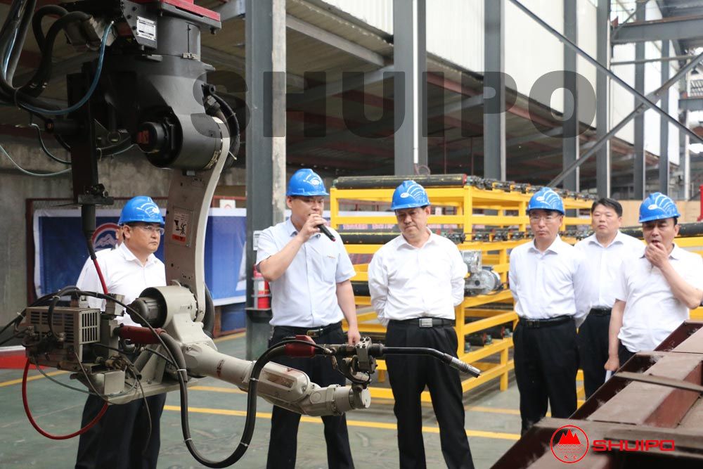 在公司領(lǐng)導(dǎo)的陪同下,張市長一行先后參觀了水泊焊割智能化裝備車間、汽車零部件智能化生產(chǎn)車間。