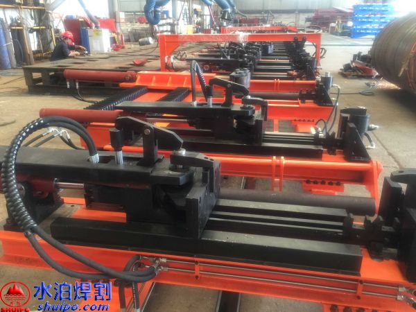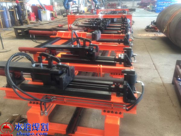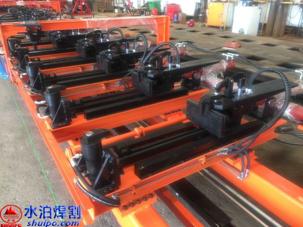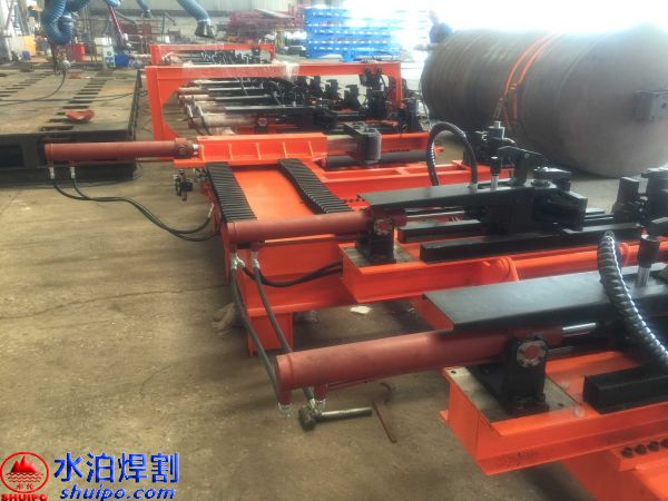 液壓縱梁點(diǎn)固工裝可同時(shí)加工兩件大梁,兩側(cè)互不干擾,適用于多種類型,鵝頸處可直接壓彎成型增加效率,翼板、腹板可隨意調(diào)節(jié)適用更多大梁,上下翼板采用旋轉(zhuǎn)油缸壓緊可防止翼板焊接時(shí)變形,腹板配有壓緊機(jī)構(gòu),工裝配有大梁升降輸送滾輪方便工件工位之間的輸送。