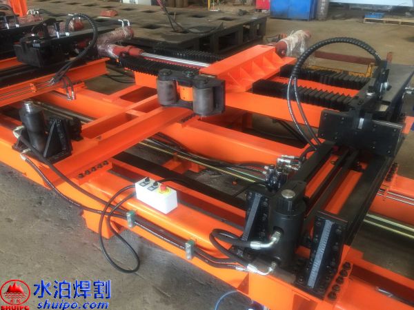 可同時(shí)加工兩件大梁,兩側(cè)互不干擾;鵝頸處可直接壓彎成型;翼板、腹板可隨意調(diào)節(jié);配有大梁升降輸送滾輪。